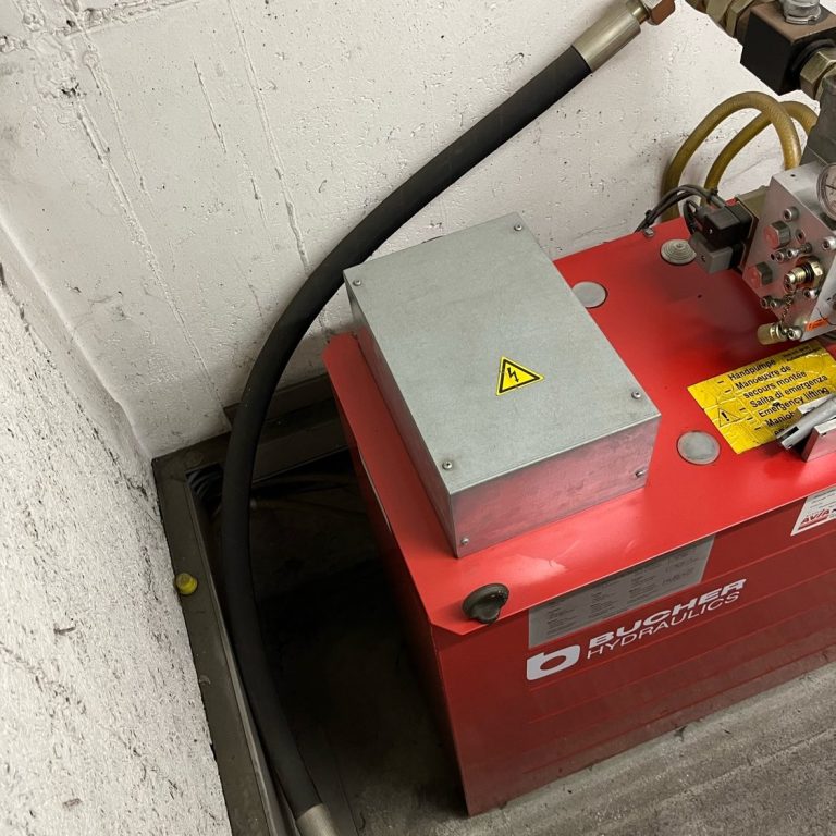 In Hydraulikaufzügen wird durch eine Pumpe Hydrauliköl von einem Tank über einen Druckschlauch in den Heber gepumpt. Die Aufzugskabine fährt hoch. Beim Herunterfahren wird das Öl wieder in den Tank zurückgeführt.