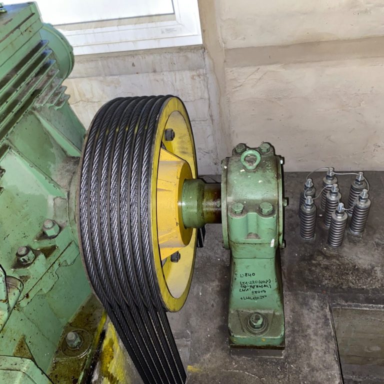 Die Hauptfunktion der Tragseile ist das Heben und Senken der Aufzugskabine und des Gegengewichts durch Reibung an einer Treibscheibe, die von einem Elektromotor angetrieben wird.